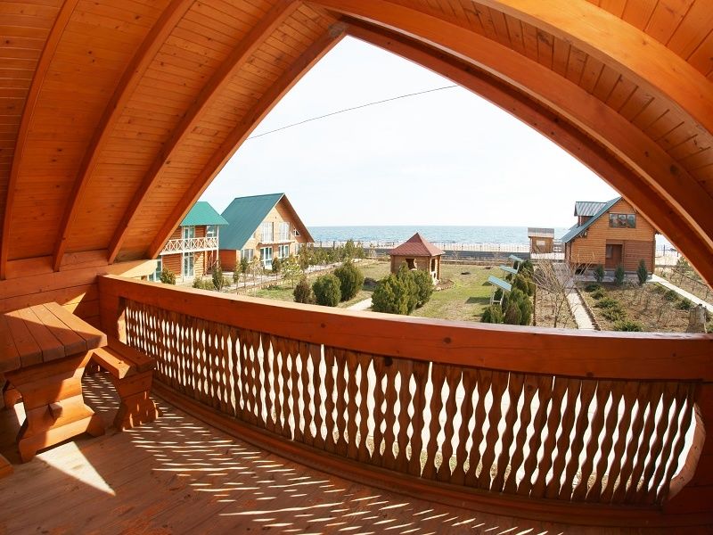 На первой береговой линии находятся пять деревянных двухэтажных коттеджей, в каждом из них на 1 этаже находится 3-комнатный номер, на втором этаже 2-комнатный номер. В одном коттедже есть два однокомнатных номера (на первом и в втором этаже) с отдельными входами.