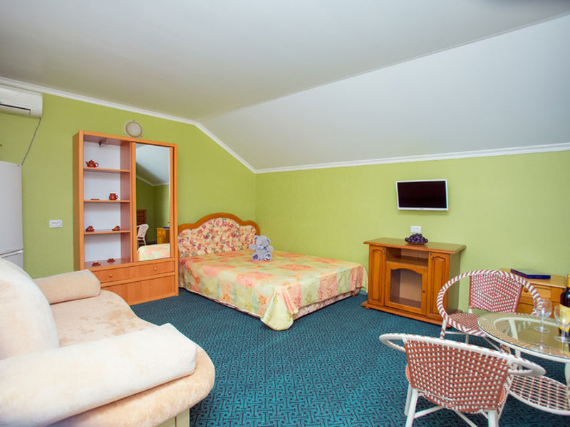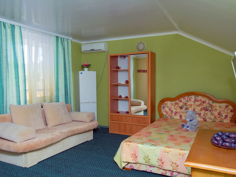 Гостиница удалена от пыльных дорог и шумных городов. Здесь отдыхающих ждет долгожданная тишина и умиротворение. Всего в пансионате 17 номеров разной вместительности и уровня комфорта. В каждом из них есть телевизор, кондиционер и холодильник.