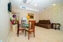 Пансионат, расположенный на небольшой благоустроенной территории площадью 2800 кв.м., состоит из одного четырехэтажного корпуса (без лифта). Гостей ожидают 24 комфортабельных номера категории Стандарт, Полулюкс, Люкс. В номерах классический интерьер, собственный санузел с душем или ванной. Комнат оснащены техникой — есть телевизор, электрочайник, холодильник фен, установлена сплит-система. В Люксах — меблированные террасы.