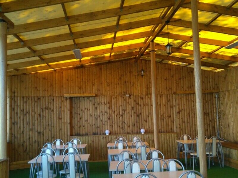 На территории пансионата расположено кафе, продовольственный магазин, автостоянка.