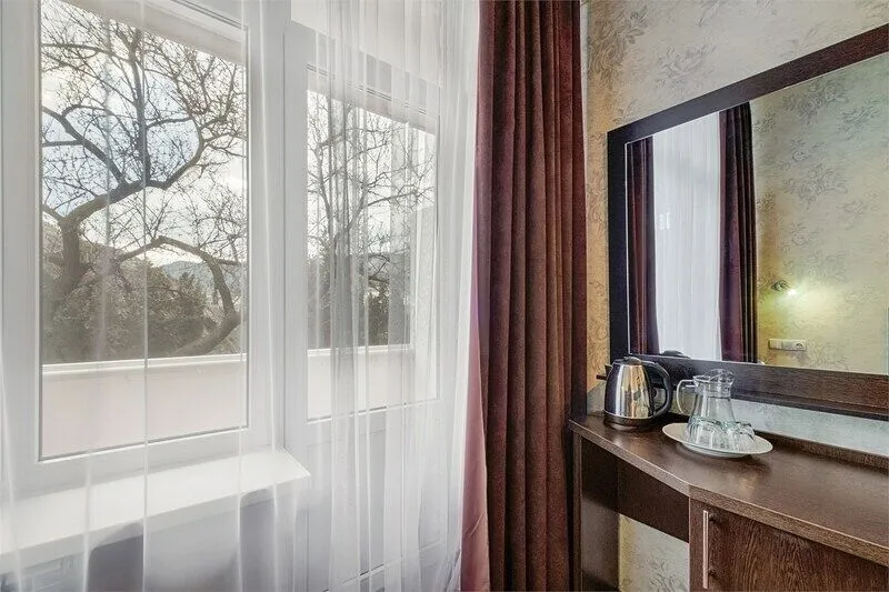 авг. 2021 г.отдых удался)Отдыхала в августе. Отель хороший, а именно: хорошее расположение, кормят хорошо, на выбор, разнообразно, в комнате были чайник, посуда, фен, телевизор, кондиционер, холодильник, посуда, шкаф, зеркало, две кровати, стол, стул, две тумбочки. Одно неудобство - это матрацы, уж очень они жесткие, неудобные, качество сна страдало из-за этого.Шампунь и гель для душа нужно купить самим, выдают только мыло. Очень удобно, что есть тазик и сушилка на балконе. Еще понравилась территория, настоящий парк, ухаживают за ней. В пансионате есть камера хранения, что тоже очень удобно. Бассейн понравился, большой и много лежаков.