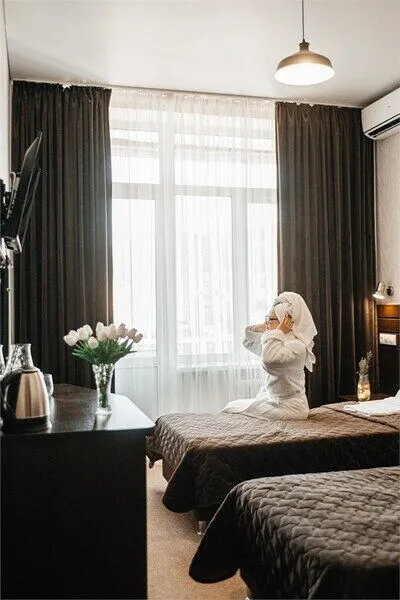 В номерах категории Комфорт сделан капитальный ремонт во всем номере. На полах постелен ковролин, сделан натяжной потолок. Номера очень удобные и светлые. На этаже есть кулер с водой.