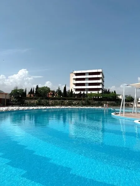 авг. 2021 г.отдых удался)Отдыхала в августе. Отель хороший, а именно: хорошее расположение, кормят хорошо, на выбор, разнообразно, в комнате были чайник, посуда, фен, телевизор, кондиционер, холодильник, посуда, шкаф, зеркало, две кровати, стол, стул, две тумбочки. Одно неудобство - это матрацы, уж очень они жесткие, неудобные, качество сна страдало из-за этого.Шампунь и гель для душа нужно купить самим, выдают только мыло. Очень удобно, что есть тазик и сушилка на балконе. Еще понравилась территория, настоящий парк, ухаживают за ней. В пансионате есть камера хранения, что тоже очень удобно. Бассейн понравился, большой и много лежаков.
