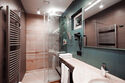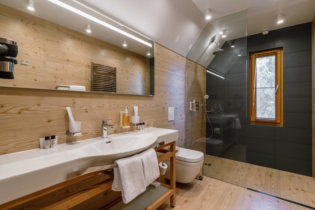 - на втором этаже коттеджа находятся 2 спальни с двуспальными кроватями, в каждой спальне есть отдельная ванная комната с мансардным окном и просторным душем;