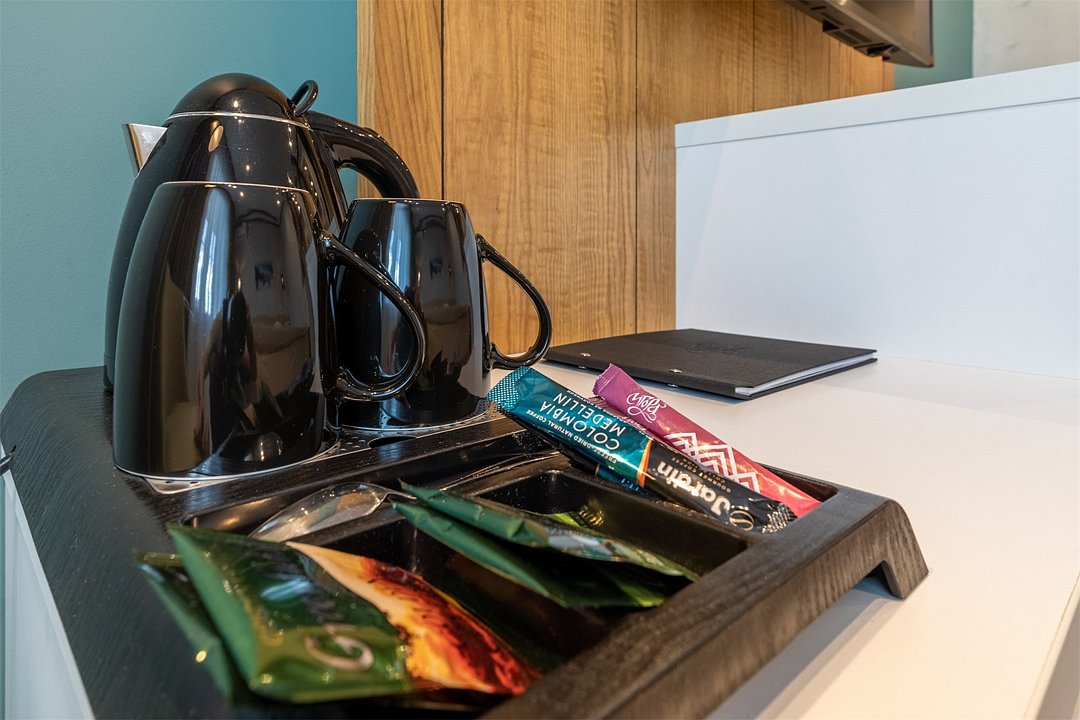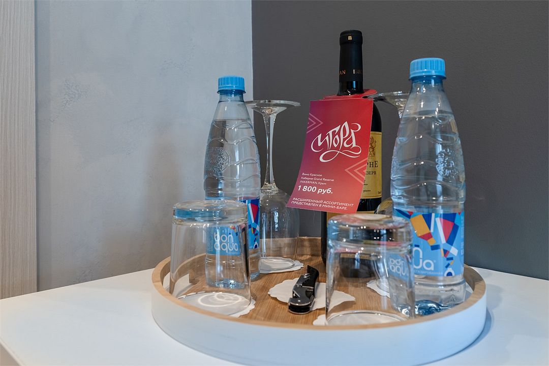 В номере есть чайник, минибар с доступными ценами, халаты, тапочки, зубной набор, что очень удобно