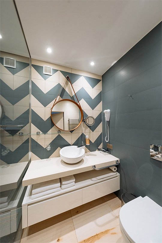 В каждом номере - ванная комната с душем и туалетными принадлежностями, фен, ЖК-телевизор*, кондиционер, сейф, платный мини-бар. Гостям предоставляются тапочки, халат и минеральная вода при заезде.