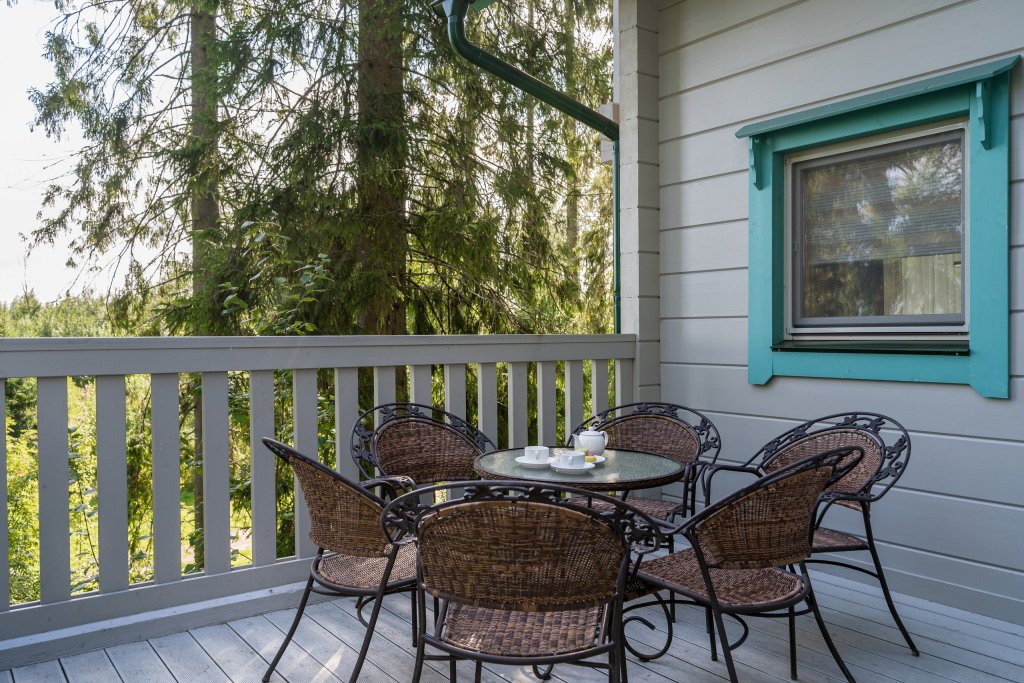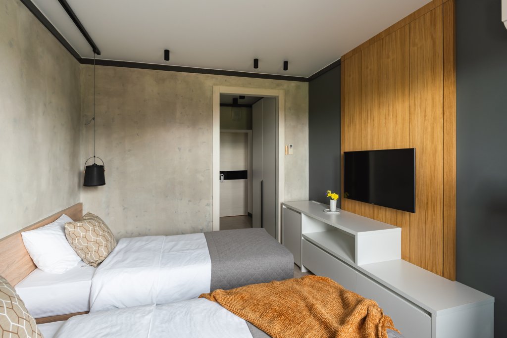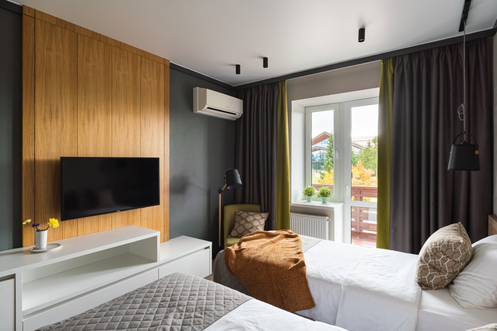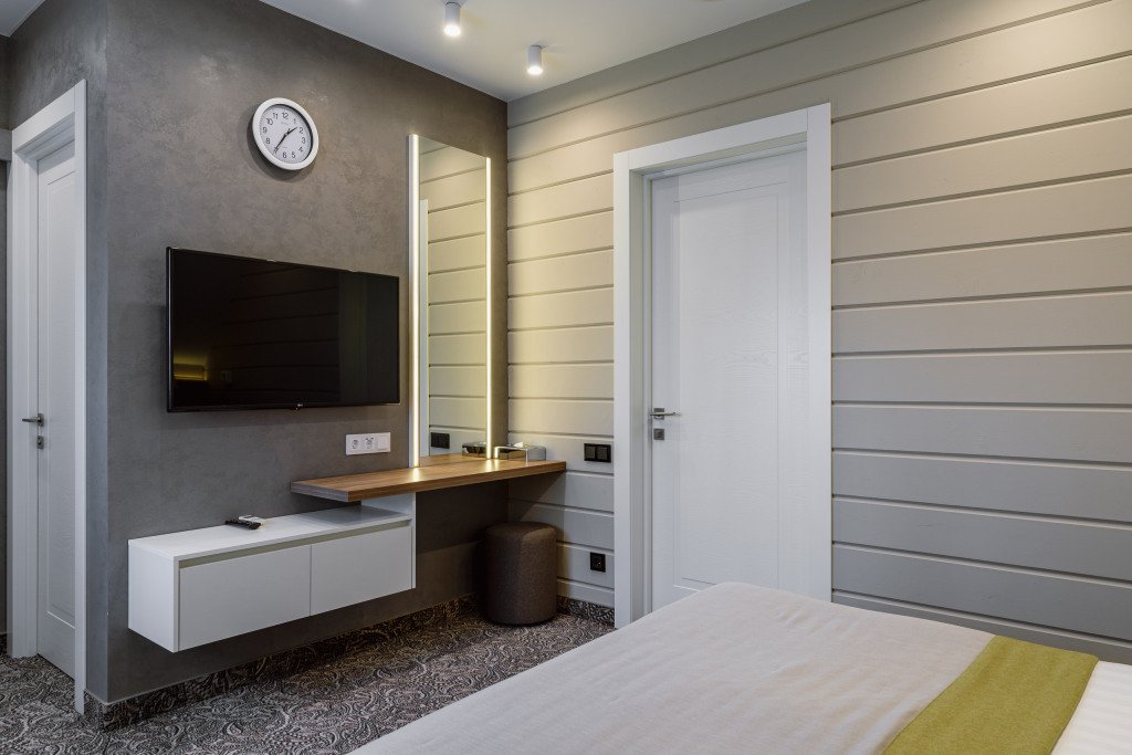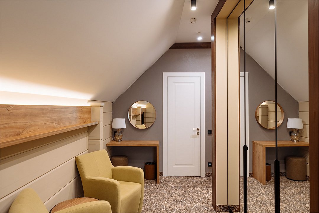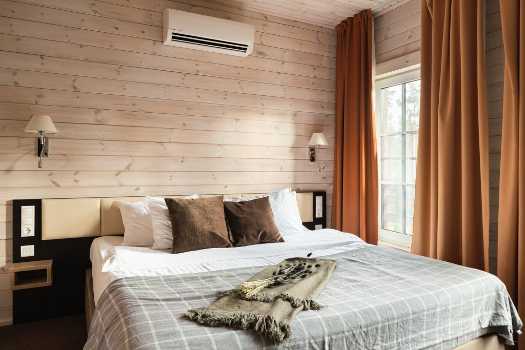 Номера в отеле выполнены в скандинавском стиле: мягкие пастельные тона, мебель из натурального дерева.