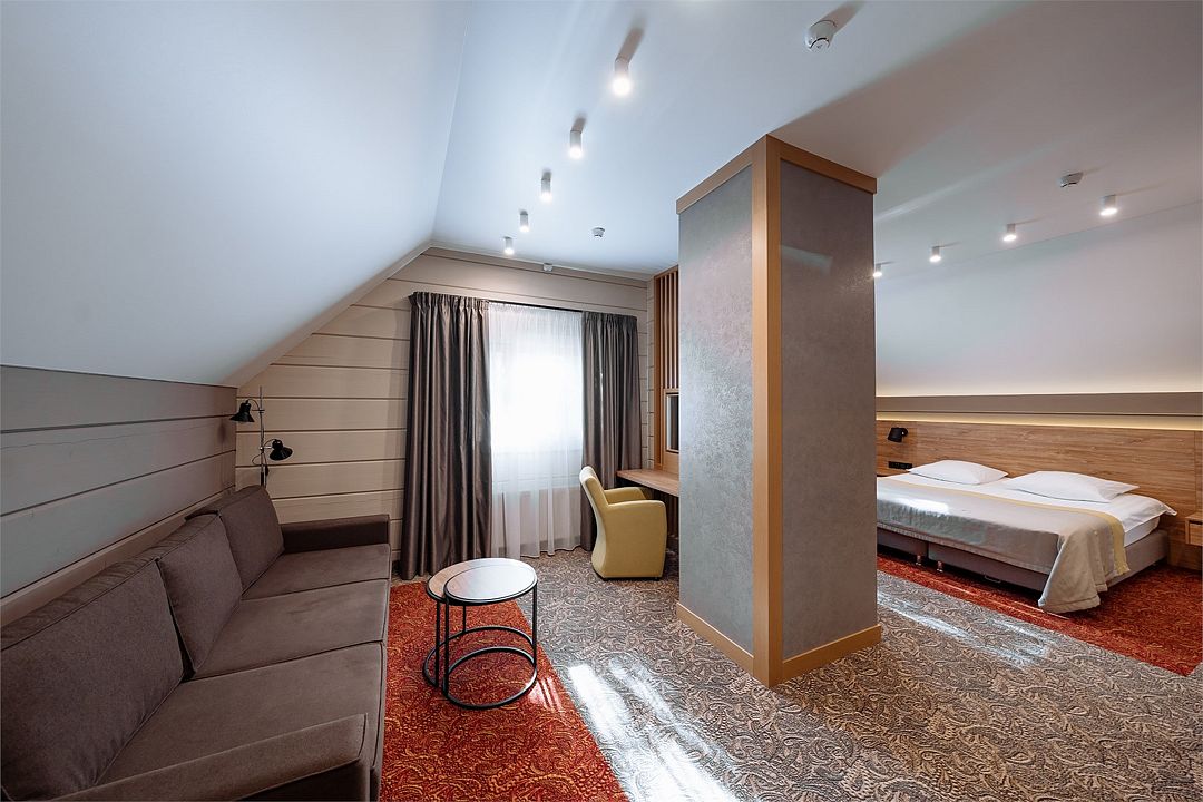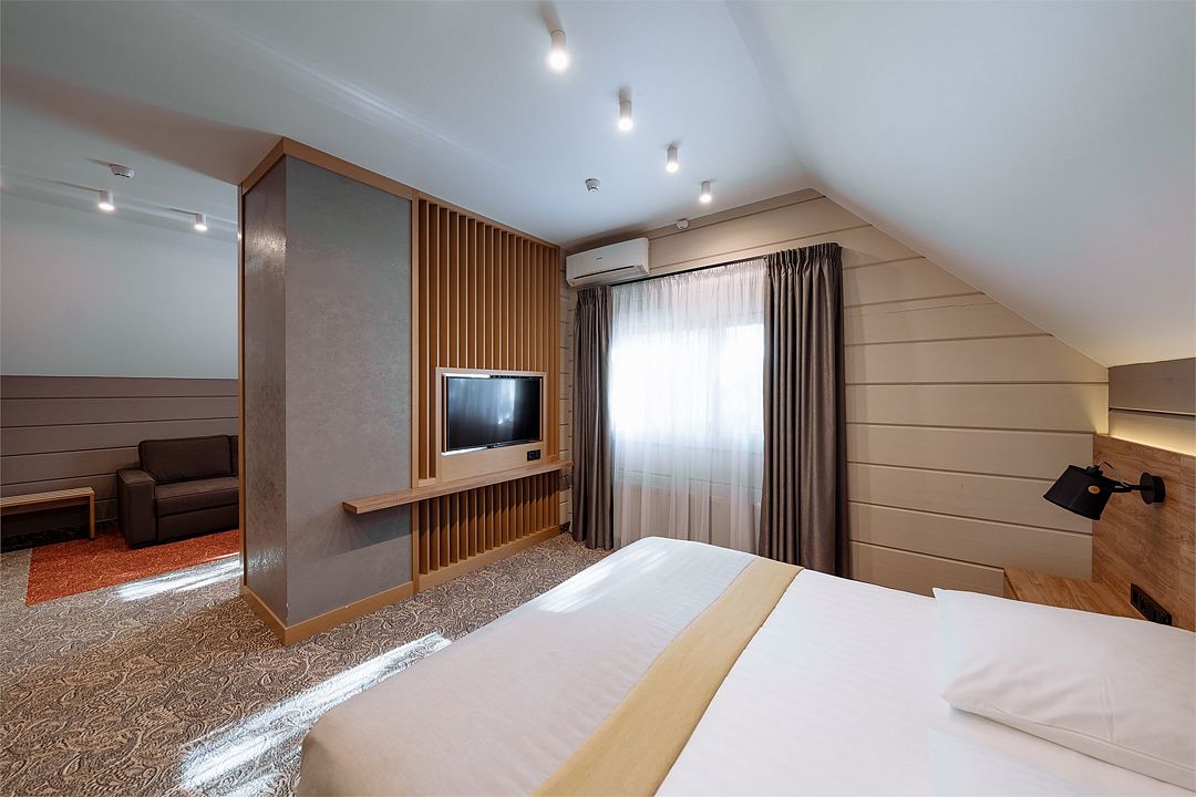 Двухкомнатный номер категории Люкс с одной двуспальной кроватью.