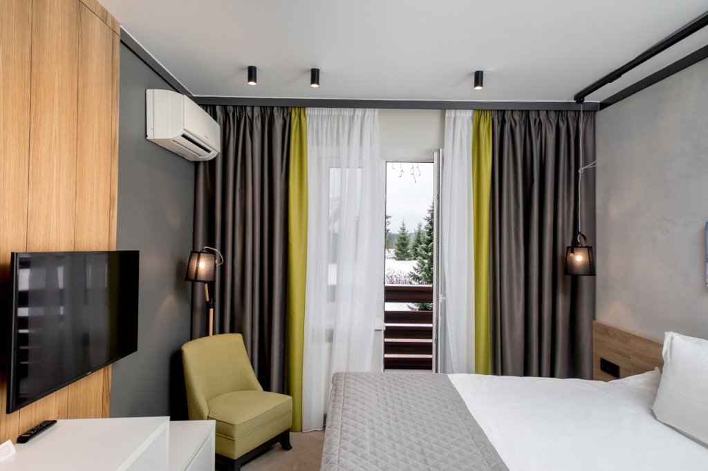 Расположенный на 130 гектарах, комплекс предлагает разнообразные варианты размещения: главный отель, комфортабельные коттеджи с каминами и апартаменты. Все номера оснащены современной мебелью и техникой.