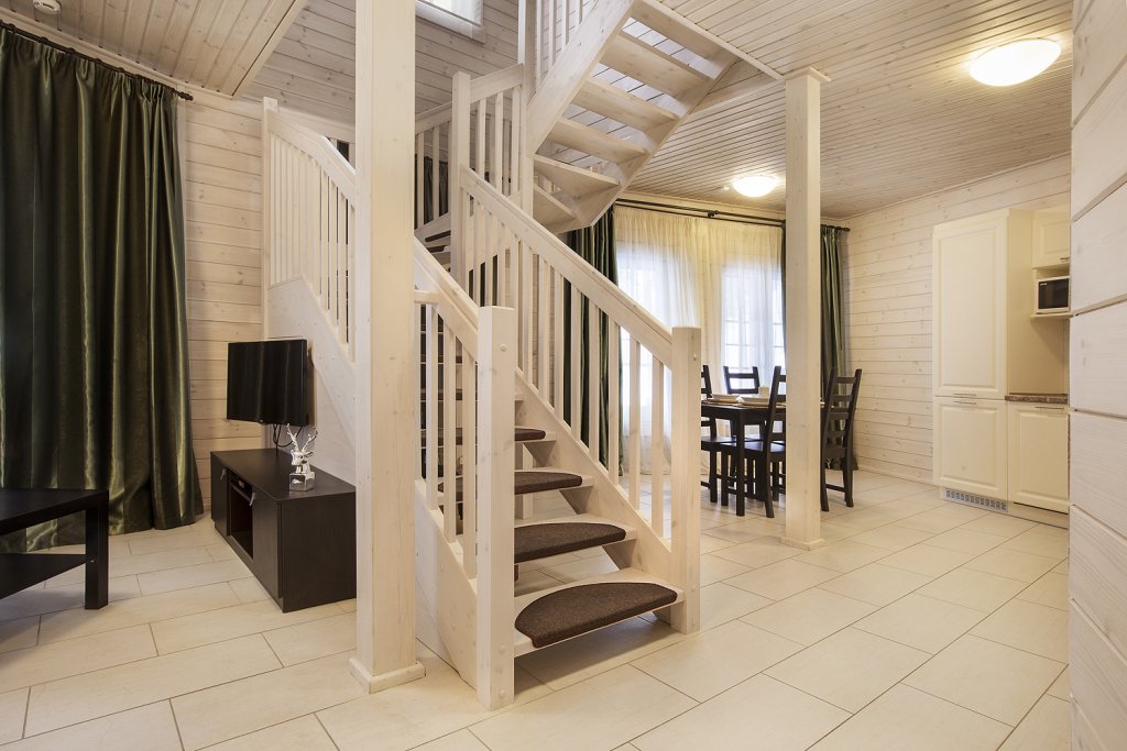 - на втором этаже коттеджа находятся 2 спальни, одна из которых с двумя раздельными кроватями, вторая — с большой двуспальной кроватью, в каждой спальне есть отдельная ванная комната;