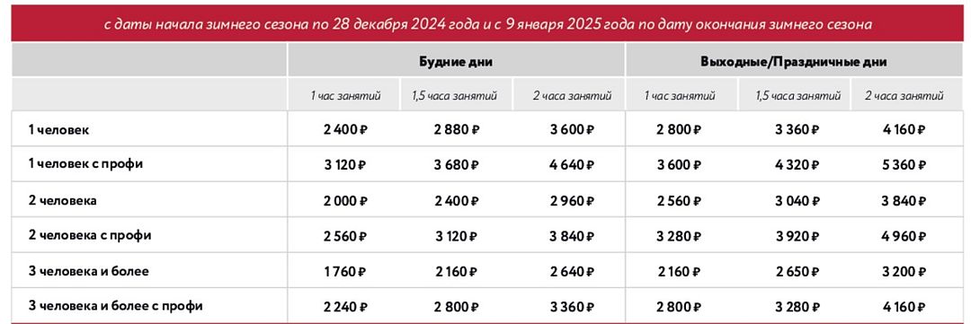 - групповая тренировка (до 10-ти/3-х человек) с инструктором;