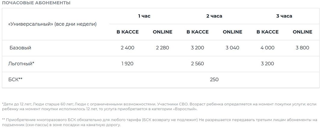 - единоразовый спуск за зиплайне. Пользование троллей парком (Zipline) возможно в зависимости от погодных условий, режима работы троллея, доступности услуги;