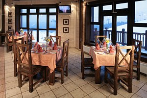 Апарт-отель расположен в нижней части курорта, у подножия склонов (расстояние от основных объектов курорта составляет 2 км - 10 минут на личном транспорте) в непосредственной близости к Озеру Развлечений.