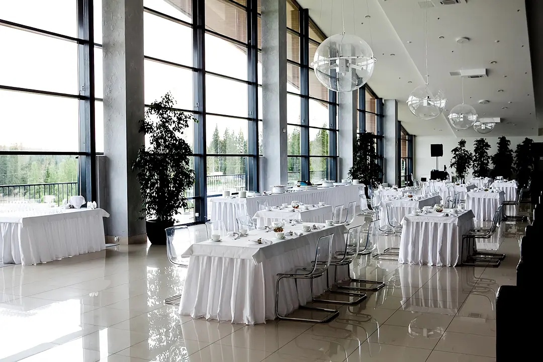 Комплекс берет на себя все техническое оформление и подготовку. Поможет организовать кофе-брейки, фуршет или банкет, который будет соответствовать даже самым взыскательным требованиям ваших гостей. Предлагает несколько вариантов планировки помещения исходя из многолетнего опыта.