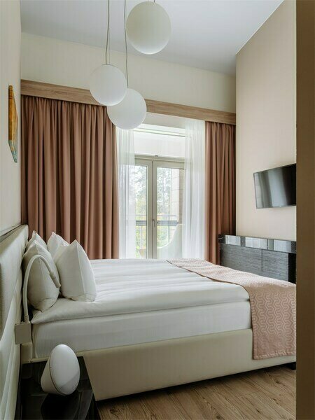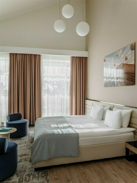 За счет панорамных окон с видом на Финский залив в номерах данной категории всегда много света. Для прохождения процедур предусмотрена индивидуальная процедурная комната. Ванная комната оснащена душевой кабиной с функцией хаммама.