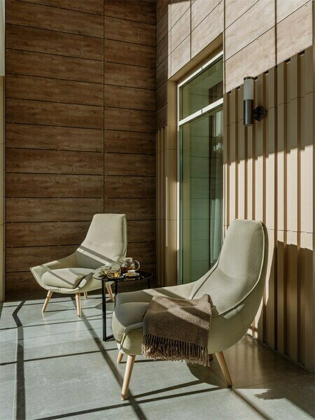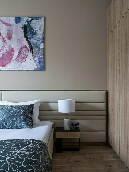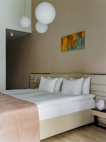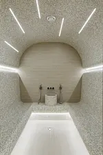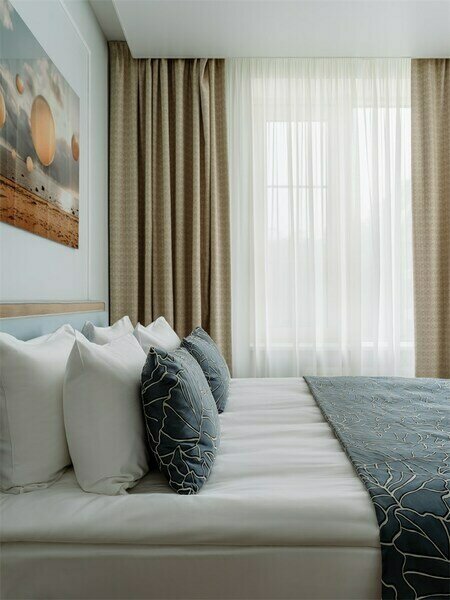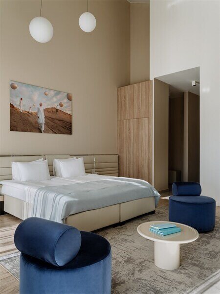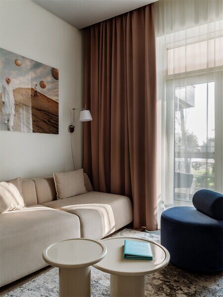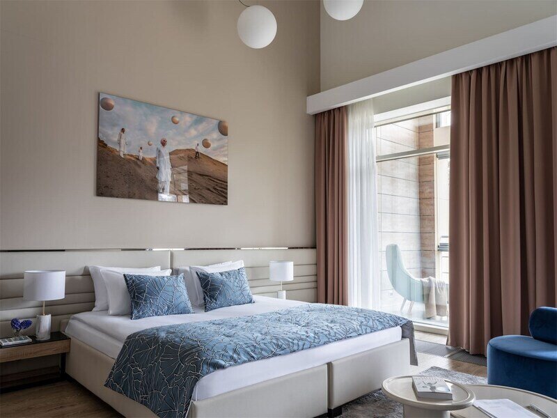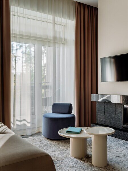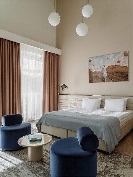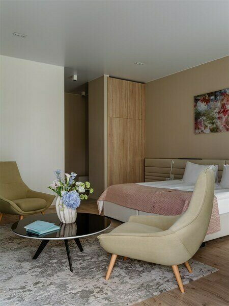 Интерьер выполнен в спокойных, природных тонах и настраивает на комфортный отдых. Для прохождения процедур в номере предусмотрена индивидуальная процедурная комната. Ванная комната оснащена душевой кабиной с функцией хаммама.