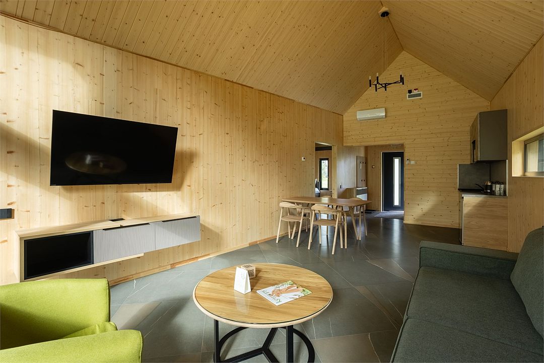 Домики и все постройки (даже хозяйственные) в одном стиле. Смотрятся гармонично и стильно. Все очень ухоженно , продуман ландшафтный дизайн у каждого домика, есть свое парковочное место, мангал. Виллы на «правильном» расстоянии друг от друга. Не муравейник как у других баз отдыха и коттеджных комплексов.
