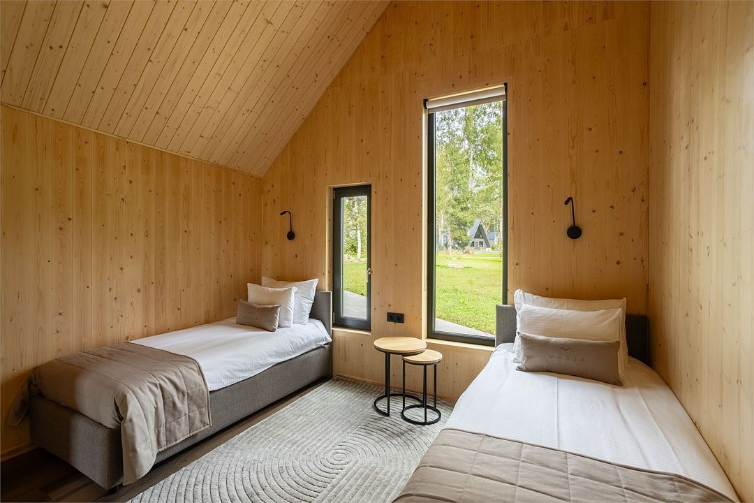 Вариант размещения подходит для компаний или семей с детьми старше 5 лет. Двухэтажная вилла площадью 144 кв.м. с тремя изолированными спальнями, просторной кухней-гостиной с камином, а также дополнительной зоной отдыха на втором этаже с панорамным окном - удобные кресла с кофейным столиком позволят с комфортом любоваться живописным видом на лес и озеро. Во всех виллах предусмотрен отдельный вход и терраса, также смотрящая на озеро. В каждом номере вы найдете все что нужно для действительно комфортного проживания: удобная мебель, две односпальные кровати в одной спальне и две спальни с двуспальной кроватью, 2 просторные ванные комнаты с душевой кабиной, полотенцами и феном, 2 телевизора, персональный сейф.Услуги и удобства