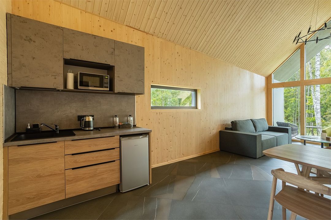 Wi-Fi, светильник, фен, электронные замки, кофемашина, микроволновая печь, утюг, ванная комната, халаты, тапочки, гигиенические средства, косметические средства, терраса, двуспальная кровать, две односпальные или большая двуспальная кровать, гладильная доска, диван, кресла, стулья, шкаф для одежды, журнальный столик, обеденный стол, зеркало, звуконепроницаемые стены и окна, сейф, мягкая мебель, косметическое зеркало, обеденная зона, отдельный вход в номер, душ, две спальни, высокие потолки, меню подушек, кухонная посуда, стаканы, столовые приборы, кофейный столик, тумба, туалетные средства, панорамные окна, внутренний телефон, мини-холодильник, телевизор со Smart TV, вид на лес, пуфик, рабочий стол, чайная станция, фумигатор, вешалки-плечики, бутилированная вода, шапочка для душа, зеркало в полный рост, прачечная (за дополнительную плату), не раскладной диван, без питомцевВ гостиничном номере