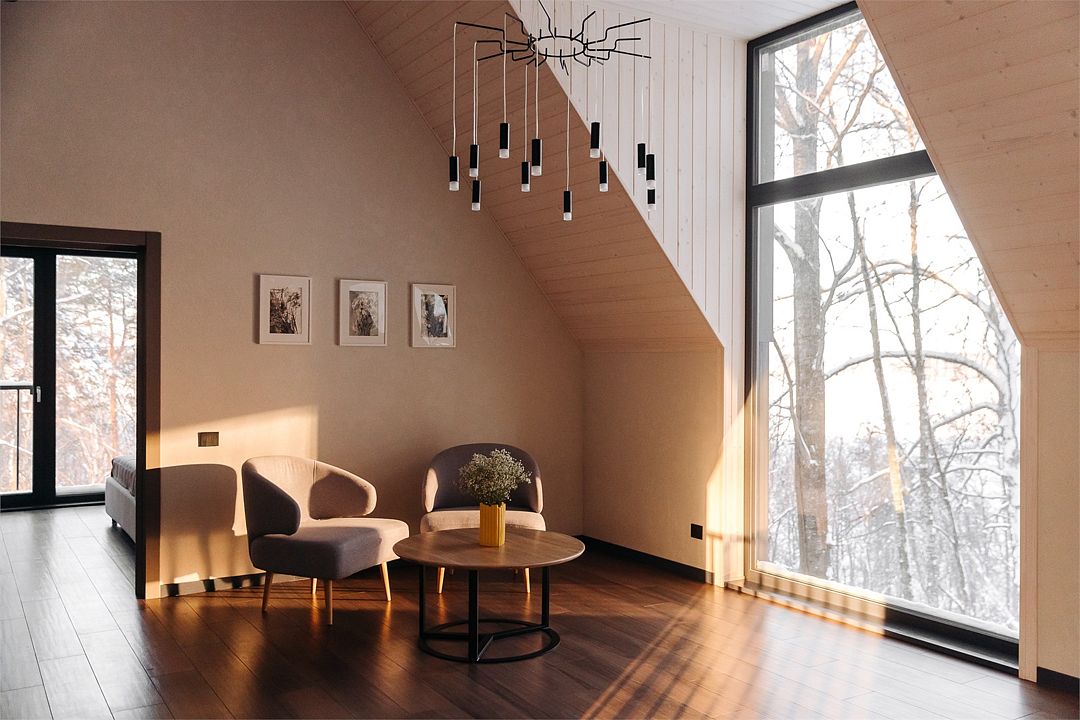 Многоуровневая вилла-студия с понижающимся полом и панорамным остеклением, невероятно высокими потолками и продуманным скандинавским дизайном станет отличным местом для романтического уикенда или уединенного отдыха.Услуги и удобства