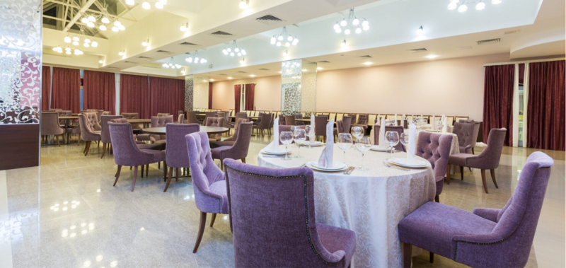 Ресторан «Лесные дали». Завтрак (с 09:00 до 11:00) — 480 ₽/взрослый, 360 ₽/ребенок, обед (с 13:30 до 15:00) — 840 ₽/взрослый, 552 ₽/ребенок, ужин (с 18:20 до 19:45) — 600 ₽/взрослый, 384 ₽/ребенок.