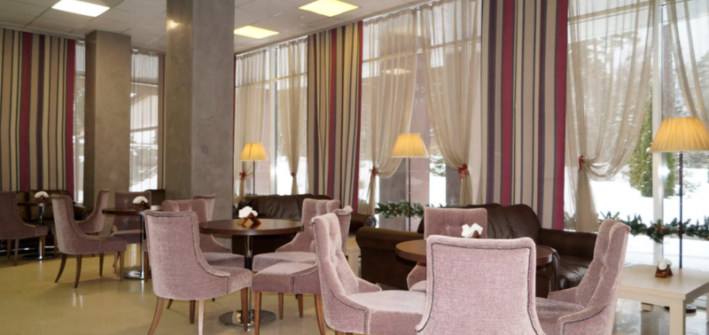В шестом корпусе для гостей ежедневно работают бар и ресторан, а в третьем – кафе. В распоряжении гостей спа-центр и крытый большой бассейн, библиотека, теннисный корт, тренажерный зал и площадки для игры в волейбол, баскетбол, футбол, зимой заливается каток и прокладываются лыжные трассы. По вечерам проводят кинопоказы и концертные программы.