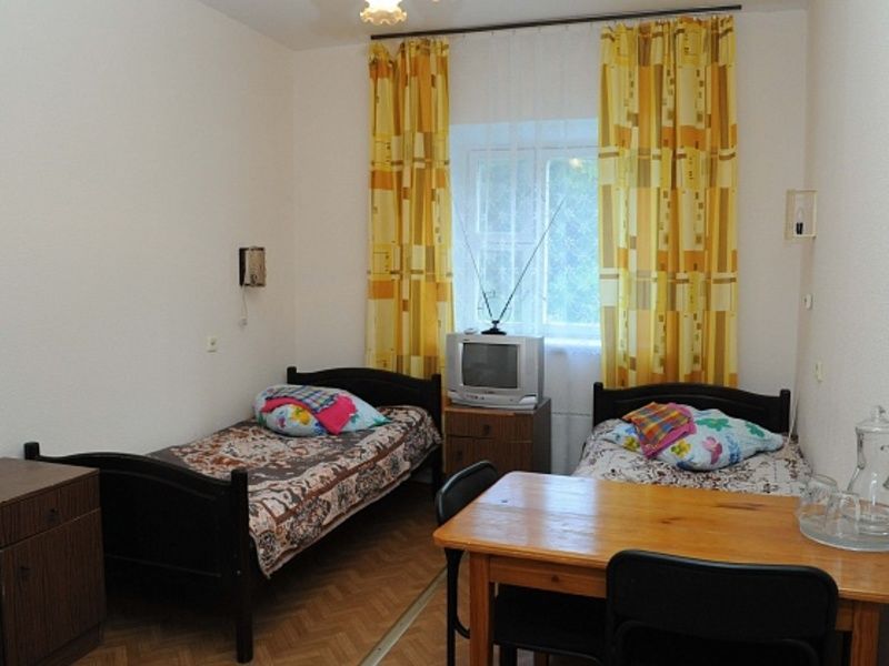 Небольшой светлый номер с видом на лес и водохранилище. Удобства общие на блок, состоящий из двух 2-местных и одного 3-местного номеров.
