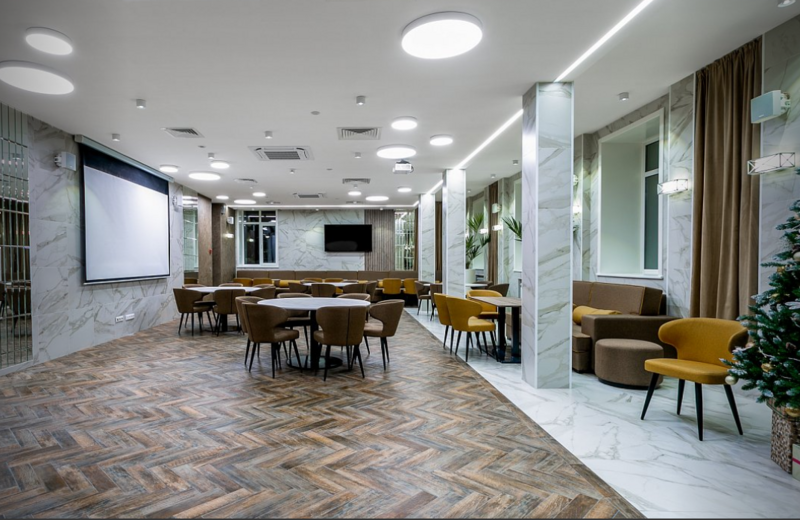 Площадь: 140 кв.м, вместимость: до 120 человек, зал оборудован плазменной панелью, саундбаром с сабвуфером. Естественное освещение.