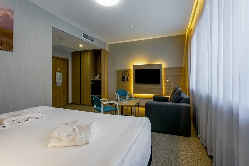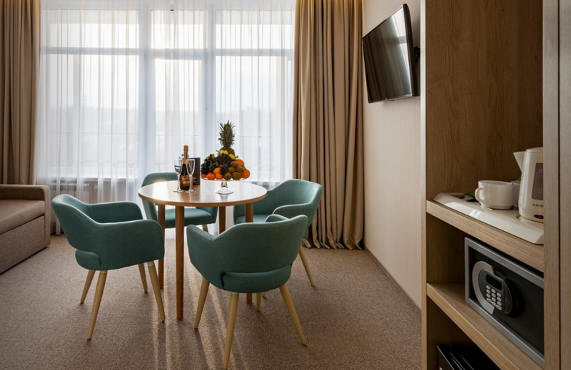 Оборудована детская комната, которая понравится и малышам, и детям постарше. Здесь они могут пообщаться со сверстниками, поиграть и даже посмотреть мультики, пока родители, например, посещают оздоровительные процедуры или отдыхают в лобби-баре.