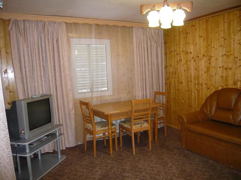4 коттеджа. Комната: две 1,5-спальные кровати, тумбочки, бра, платяной шкаф, обеденный стол, стулья, холодильник, электрочайник, чайная посуда, TV.