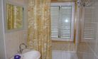 Санузел: ванная, умывальник, унитаз, полотенца.