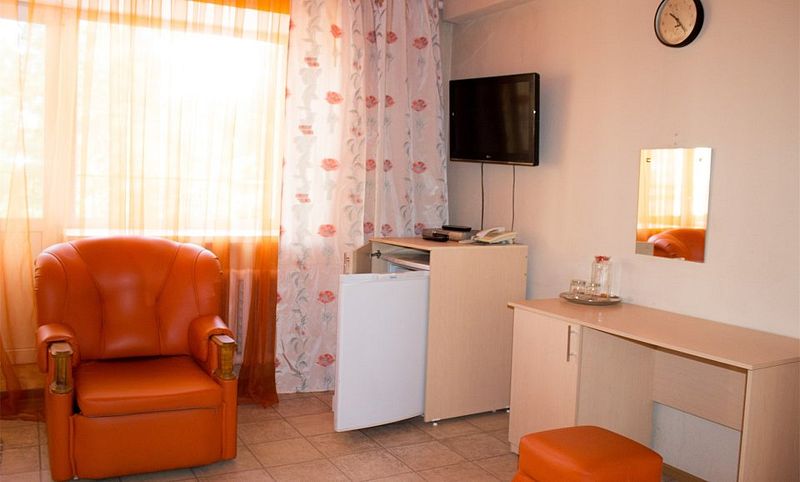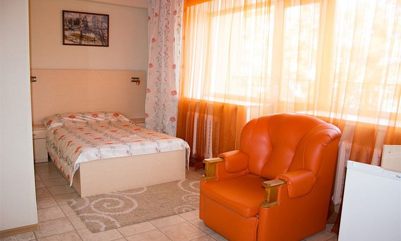 Пансионат содержит около 65 номеров. По запросу предоставляются номера для некурящих. Здесь созданы все условия для комфортного проживания — есть холодильник, телевизор, фен, утюг, сейф, отопление, терраса.
