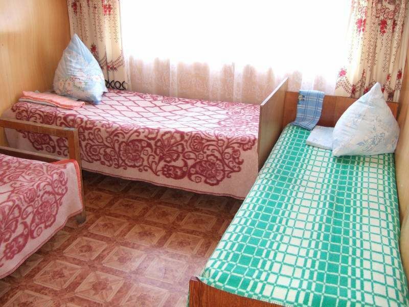 В каждой комнате односпальные или двуспальные кровати, тумбочки, вешалка. Туалет и умывальники на этаже. Душ на улице.