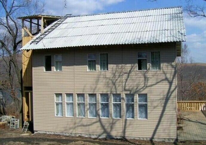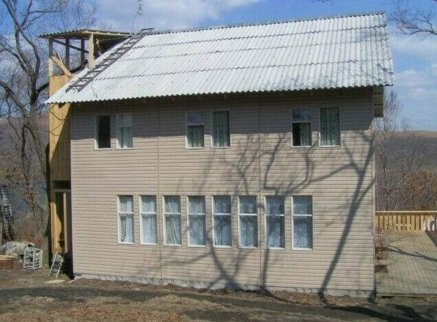 - Капитальный 2-х этажный дом с верандой. На первом этаже: столовая - гостиная (используется как столовая, кроме летнего сезона), камин, телевизор, холодильник, плита, чайный стол. Туалет, умывальник, душ (горячая и холодная вода, бойлер).