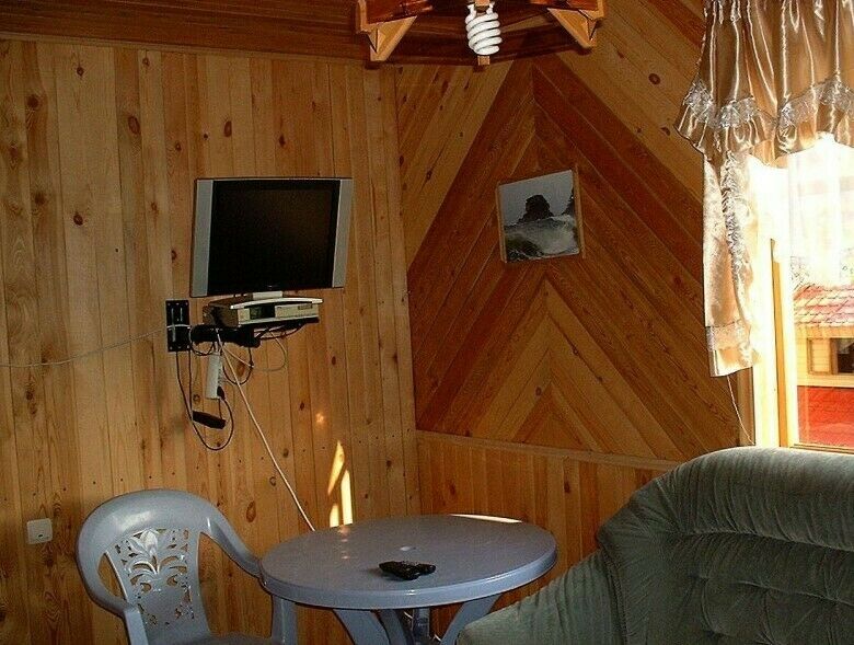 В каждом номере двуспальная кровать, шкаф для одежды, тумбочки, есть спутниковое TV и видеоплеер. Туалет и душ на этаже. Питание накрывается по желанию отдыхающих в коттедже или в мини-отеле.