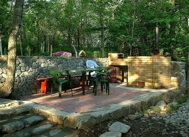 К услугам туристов крытая площадка барбекю, оборудованная тандыром и стационарным мангалом, терраса, баня и два пруда, засаженные экзотическими растениями и зарыбленный карпами. Между ними ставят большой детский надувной бассейн с пресной водой.