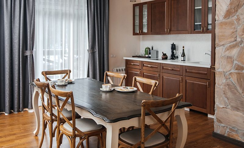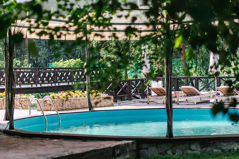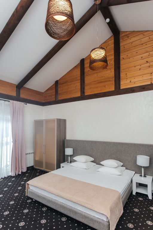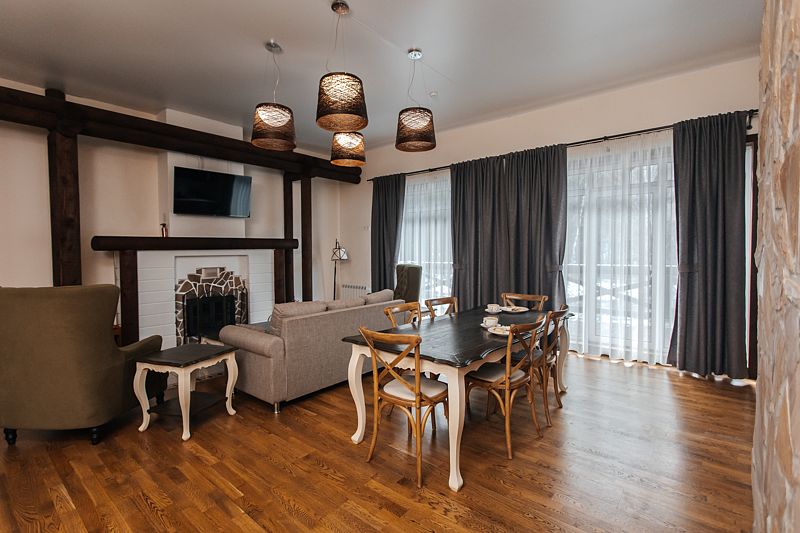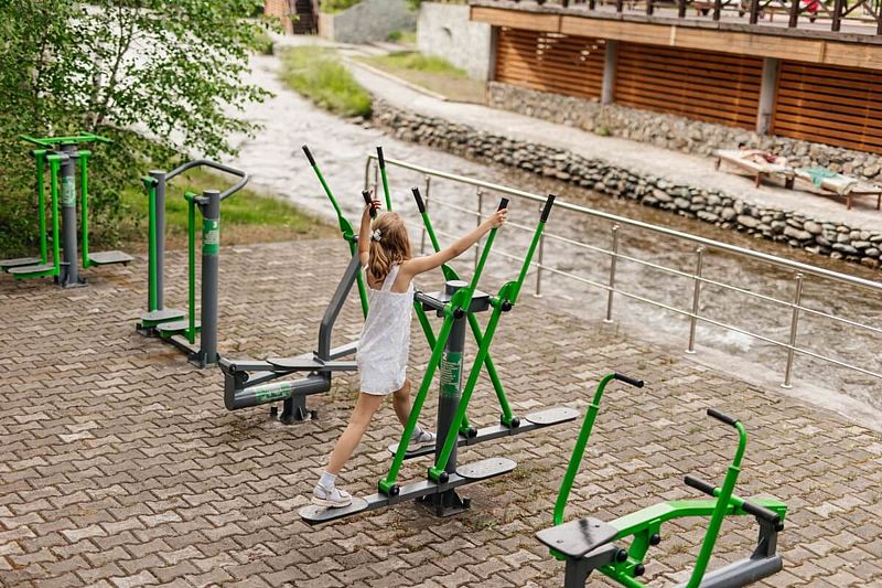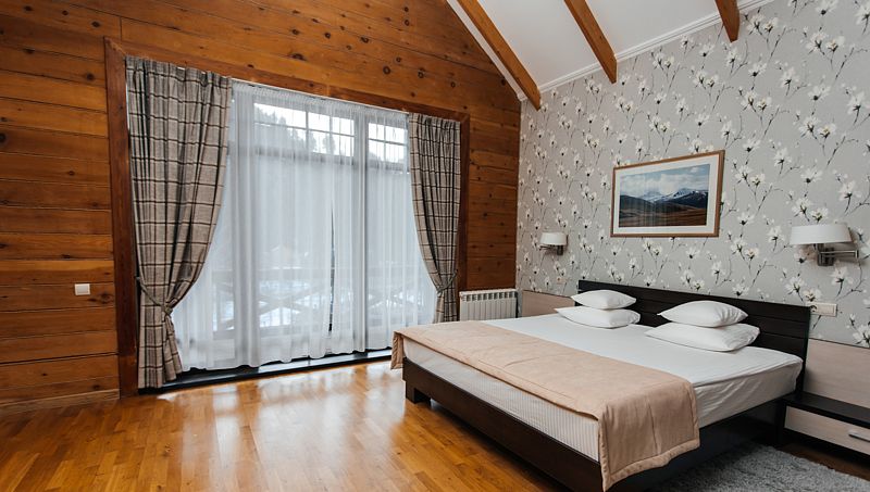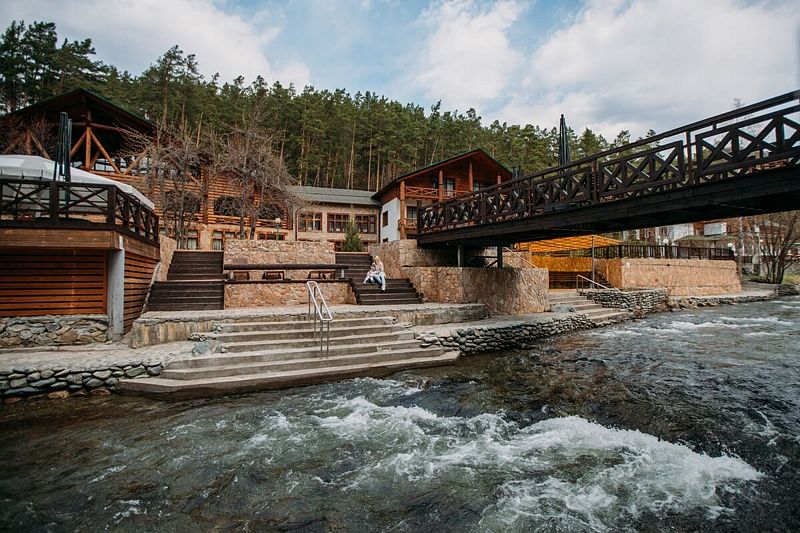 Об отеле: находится в приватном месте в стороне от дороги, красивый вид на горы, на берегу речки, ухоженная территория, охраняемая парковка, крытый бассейн, сауна, баня, хамам, тренажерный зал, медицинский центр. Очень удобно, что из номера можно попасть в любую зону, не выходя на улицу(в ресторан, спа, тренажерный зал, мед. кабинеты), и в халате пройти в спа-комплекс. Есть ещё отдельно стоящая на берегу речки русская баня и банный чан. Мы заказали чан и получили полный восторг: температура в чане была идеальной (спасибо за это сотруднику банного комплекса Сергею), нежиться в такой воде, глядя на горы, бегущую речку - это кайф.