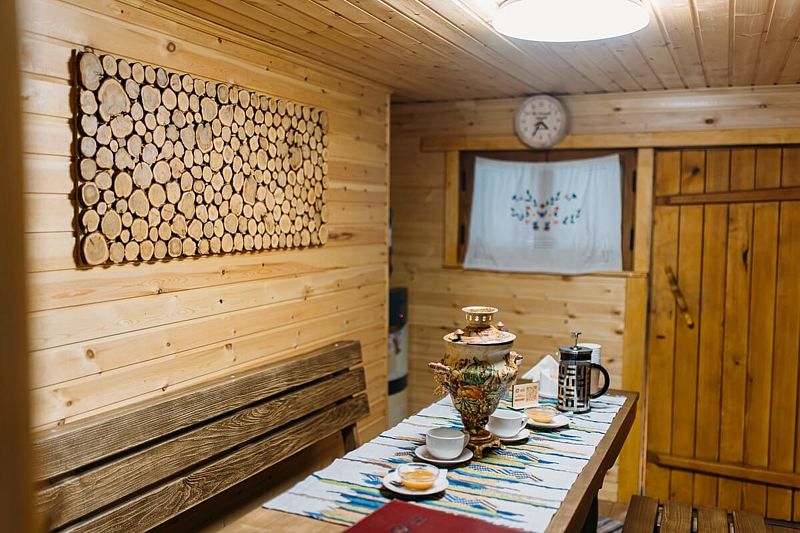 После «бани по-черному» обязательно посетите «баню по-белому», очистите свое тело, насладитесь водными процедурами и обрядами парения. Профессиональный пармейстер, натуральные банные веники и природная минеральная вода из собственного источника помогут вам ощутить себя избавленными от всего лишнего, отдохнувшими и наполненными энергией! Вместимость 5 человек.