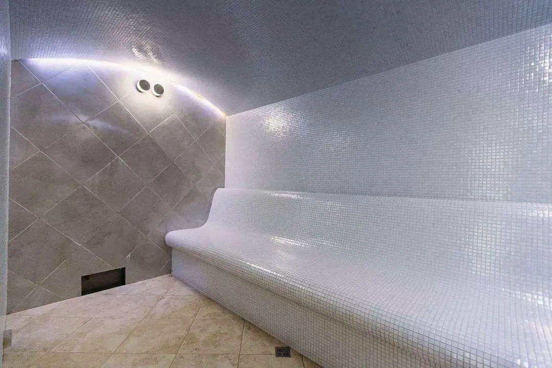 Читать полностьюМикроклимат хаммама (100% влажность при температуре от 35 до 55 °C) благотворно влияет на человека и способствует расслаблению. Благодаря значительной площади испарения вентиляция легких увеличивается как минимум в 2,5 раза, а активное потоотделение способствует нормализации водно-солевого баланса.