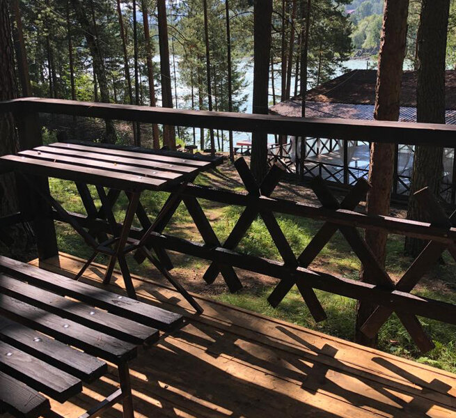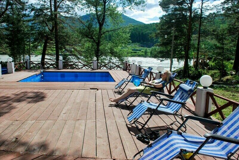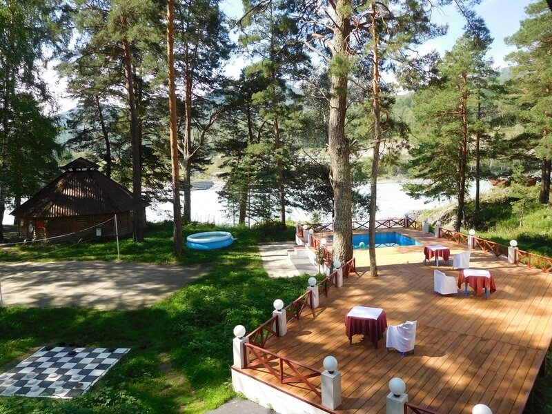 Семейный отдыхДостоинстваИзумительное место!!!Территория огромная,есть пляж,кафе.И не одно.Номер у нас был Шале-люкс с видом на Катунь.От жары спасали деревья и прохлада от реки.Радушный прием и быстрое заселение.Только плюсы и восторг.Это место однозначно вошло в список мест,которые мы посетим еще раз!!!