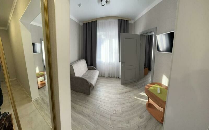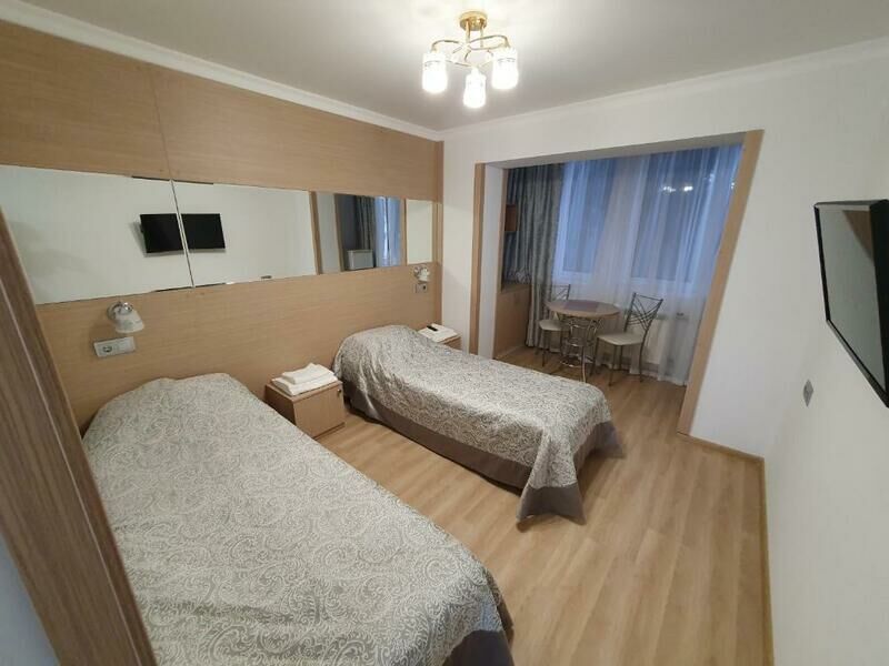 Трехэтажное здание расположено на тихой зеленой улице Клары Цеткин. Отдыхающих ждут 16 номеров, есть как бюджетные варианты, так и улучшенные номера. В каждом номере есть собственная ванная комната и душевая комната, мини-холодильник, электрический чайник и телевизор. Жилищный фонд небольшой, рассчитан на 35 отдыхающих в общей сложности, поэтому Ваш отдых пройдет спокойно и умиротворенно.