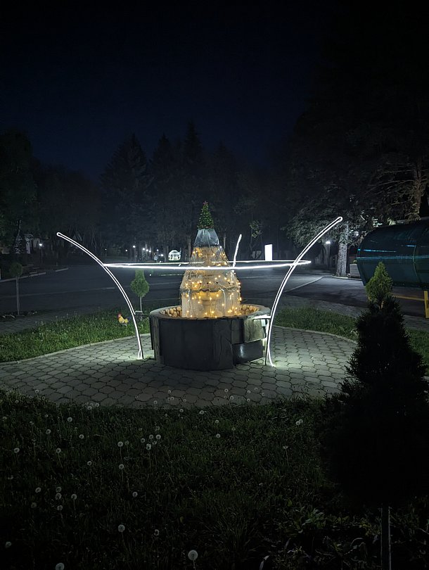 Жемчужиной всего комплекса является питьевой бювет минеральной воды, расположенный в 20 метрах от скважины. Уникальность нашей минеральной воды Славяновского типа сульфатно-гидрокарбонатной с минерализацией воды 3,7 г/л, содержанием углекислоты 1,3 г/л заключается в использовании ее непосредственно из источника (скважины рядом с питьевым бюветом глубиной 1245 м с естественной температурой 420С).