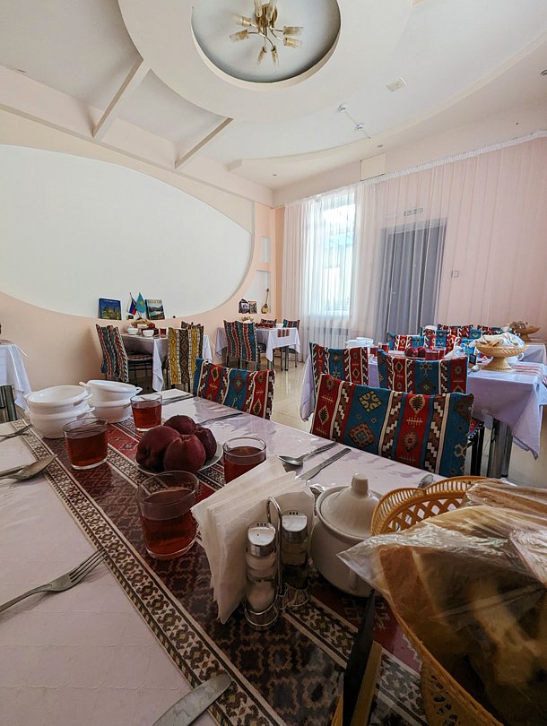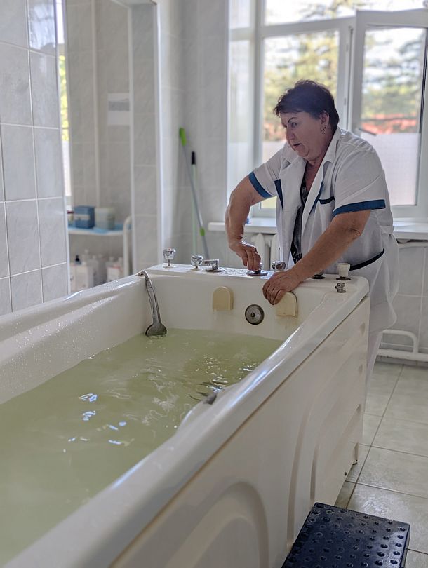 Но, прежде всего, мы ехали лечить заболевания опорно-двигательного аппарата: дорсопатии, артрозы, туннельный синдром справа (следствие моей 30-летней работы в IT). Кроме того, я полтора года страдала болями в стопе и отеками в ней (неудачно подвернула ногу, в результате чего воспалились плюснефаланговый сустав, сухожилия, мышцы и нервы стопы). Конечно, ранее лечилась: НПВП, физиолечение, параартикулярные блокады, местное лечение, - остроту заболевания сняли, но оно перешло в хроническую форму. На следующий день по приезду после завтрака мы пошли на прием к врачу Тазартуковой Фатиме Давлетовне. Замечательный, опытный, внимательный доктор, ас своего дела! Она нас внимательно выслушала, расспросила о жалобах, общем состоянии и образе жизни, назначила общетерапевтическое оздоровительное лечение и процедуры на беспокоящие зоны. Кроме того, предложила карбокситерапию на наиболее болезненные участки тела, а мне и озонотерапию. Муж (а он хирург) знал положительный эффект этих методов и мы согласились. Процедуры платные, но цены более чем умеренные. Всего было назначено по 15 видов лечения для каждого (от 3 до 12 процедур каждого вида), но они все были распределены по датам и времени и мы всё, без суеты, успевали: сразу после завтрака шли в лечебный корпус и находились там до обеда. Персонал лечебного корпуса – доброжелательные, душевные, солнечные, очень приятные девушки и женщины, - к каждому пациенту относятся, как к родному! А чего стоят задушевные беседы с ними! Огромная им благодарность за их заботы и труд! Мы испытали ощущение полного релакса!