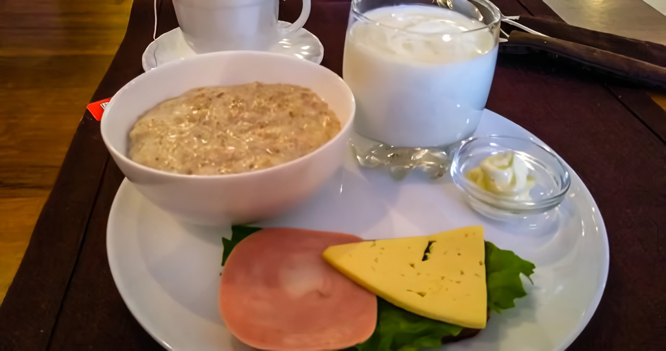 Самый большой минус - это завтрак. Он откровенно плохой, на вкус нашей семьи. Шведский стол очень скудный. Есть сухие шарики, молоко, какой-то лаваш с зеленью, салат типа крабового, сырная нарезка, варёные яйца и сладости (печенье, халва). Отдельно, порционно предлагают кашу или яичницу. Кофе растворимый и чай в пакетиках в доступе. Варëный кофе за деньги. 150 руб - американо. К слову, платный кофе хороший. Еда, кроме яичницы и сыра, невкусная. Мы в итоге стали завтракать в другом кафе. Не смотря на то, что у нас входил завтрак в проживание.