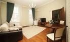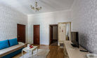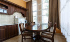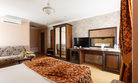 Номер состоит из трех комнат: спальни, гостиной и кухни. Комнаты, оформленные в классическом современном стиле. Расположены на втором этаже первого корпуса. Кухня полностью оборудована столовыми и кухонными принадлежностями, печью СВЧ, газовой плитой. Есть номер с балконом.