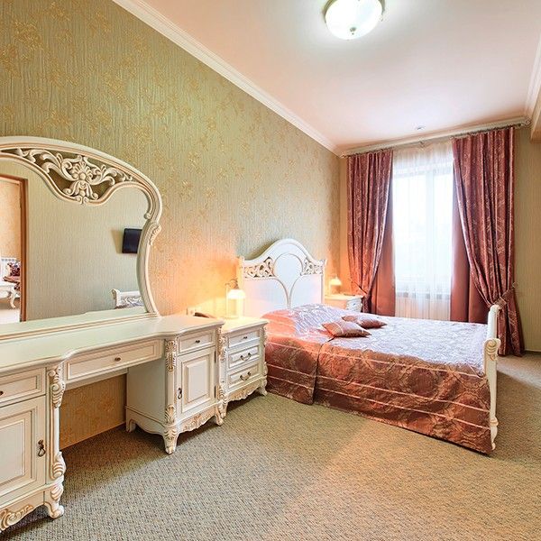 Однокомнатный номер, разделенный на зону спальни и гостиной, в стиле барокко. Изюминкой номера является неповторимый стиль и интерьер.
