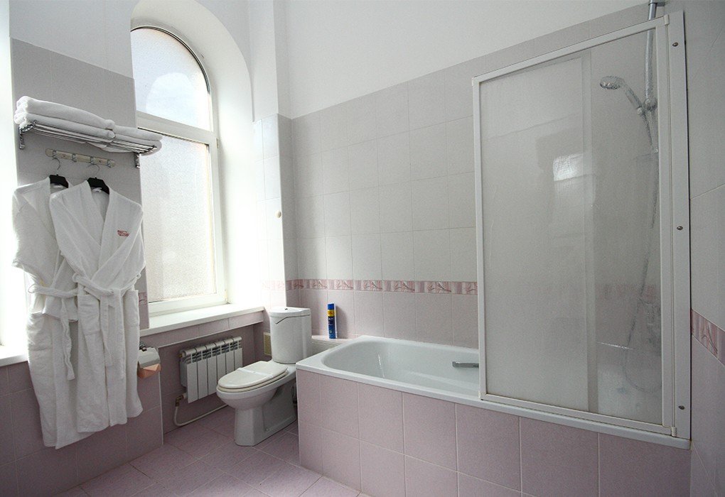Путешествие с паройАтмосферное местоОстанавливаюсь в пансионате второй раз. Очень удачная локация у отеля. Я ценю тишину и покой )) Спасибо охраннику за чуткое отношение. Он помог нам с мамой подняться и спуститься по лестнице с багажом. Душ в туалете не очень удобен, но можно пережить. Рекомендую!