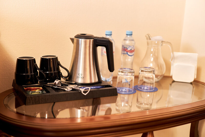 В каждом номере: фен, чайная станция, кофемашина, комплект полотенец, средства гигиены, халаты.