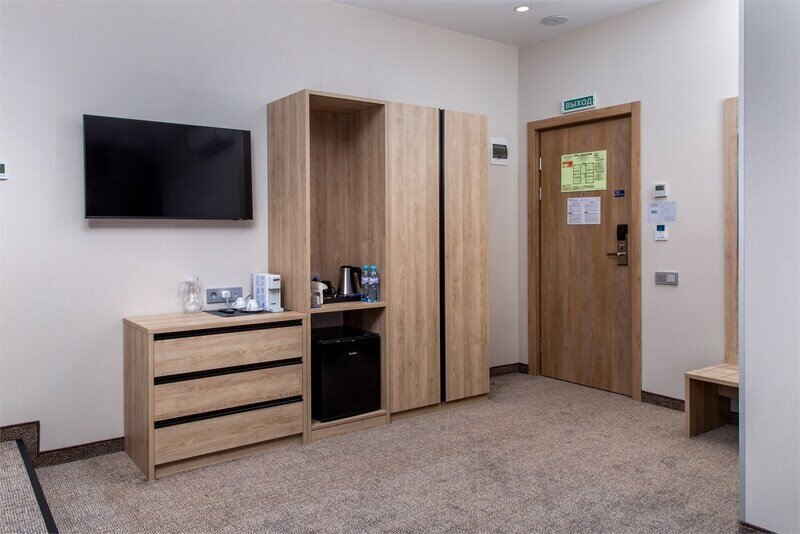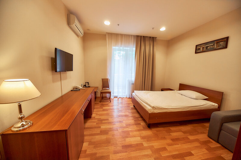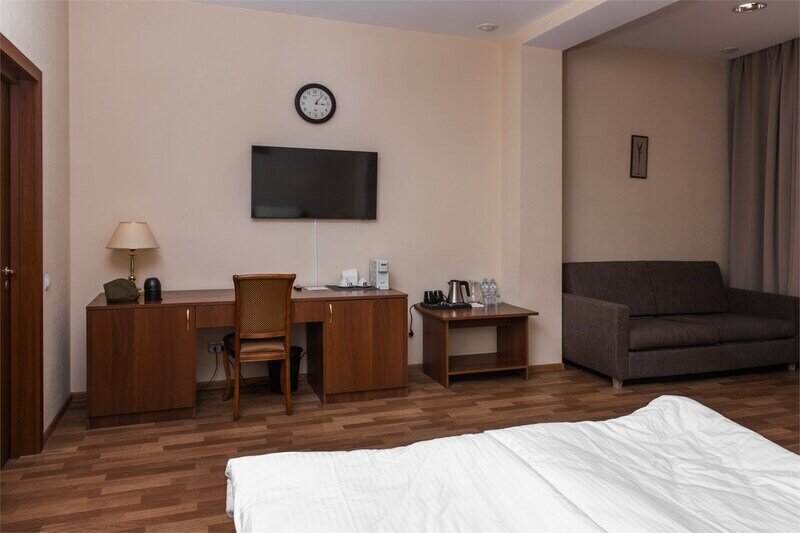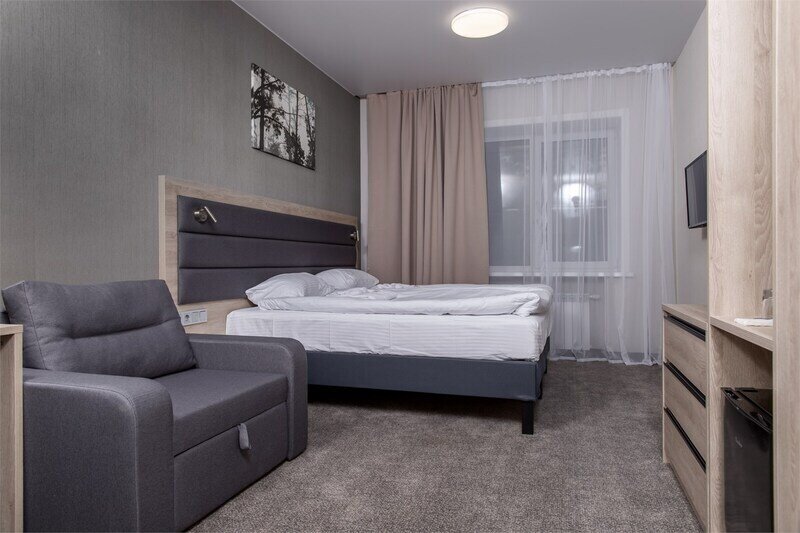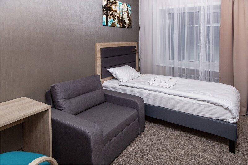 Современный одноместный номер «Бизнес» — оптимальное решение для комфортного отдыха одного человека. В номере — уютная спальня с односпальной кроватью, диваном, рабочим столом, шкаф для одежды, санузел с душевой зоной.