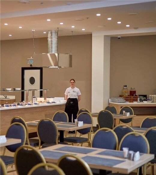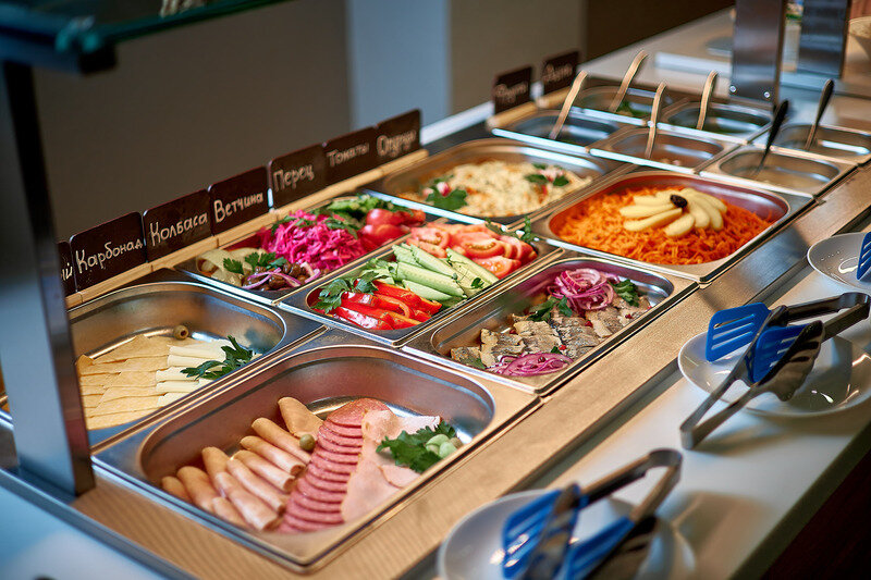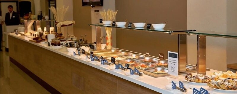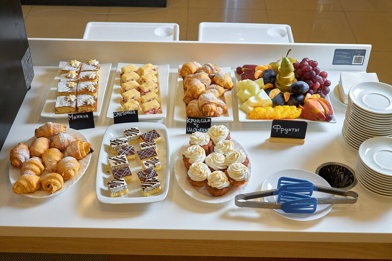 Завтрак в будни с 08:00 до 11:00 в формате шведский стол.